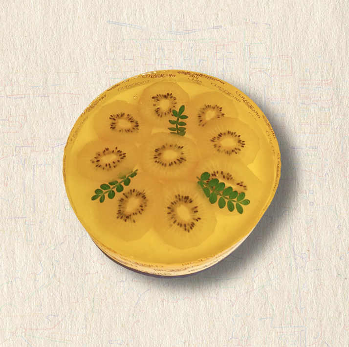 Bánh Mousse Trái Cây với trái cây tươi được cách điệu cùng lớp gelatin trong suốt tạo sự hấp dẫn.